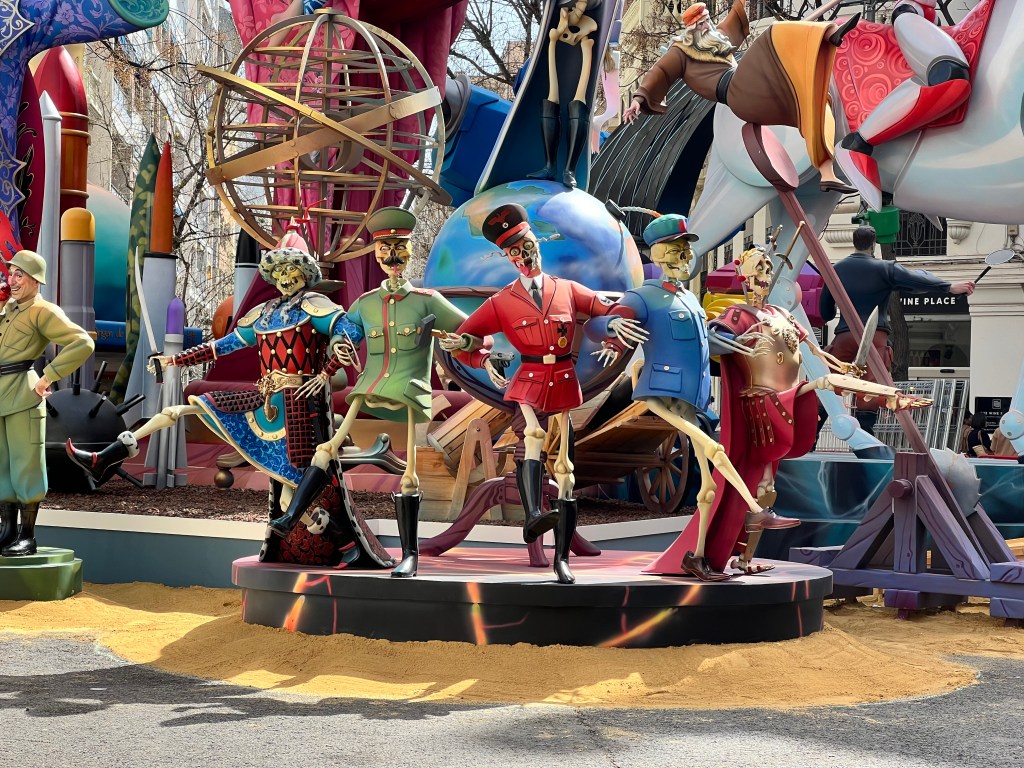 On dit que tout le monde devrait venir aux Fallas une fois dans sa vie. Certes, on en revient ravi·e. Mais on est aussi en droit d’être sonné·e et d’avoir les oreilles qui bourdonnent. On peut aussi se sentir interloqué·e et plutôt frustré·e, voire vert·e de colère, devant tout ce déballage d’éphémère, d’excès et de gaspillage. On a beau reconnaître que c’est beau et très impressionnant, force est de constater qu’un carnaval de ce type n’est pas défendable au 21e siècle. Un carnaval de ce type doit être revisité, modifié pour le rendre compatible avec la défense de l’environnement, les objectifs de réduction de consommation de plastiques à usage unique, le contrôle des niveaux de pollution et la lutte contre le réchauffement climatique en général.