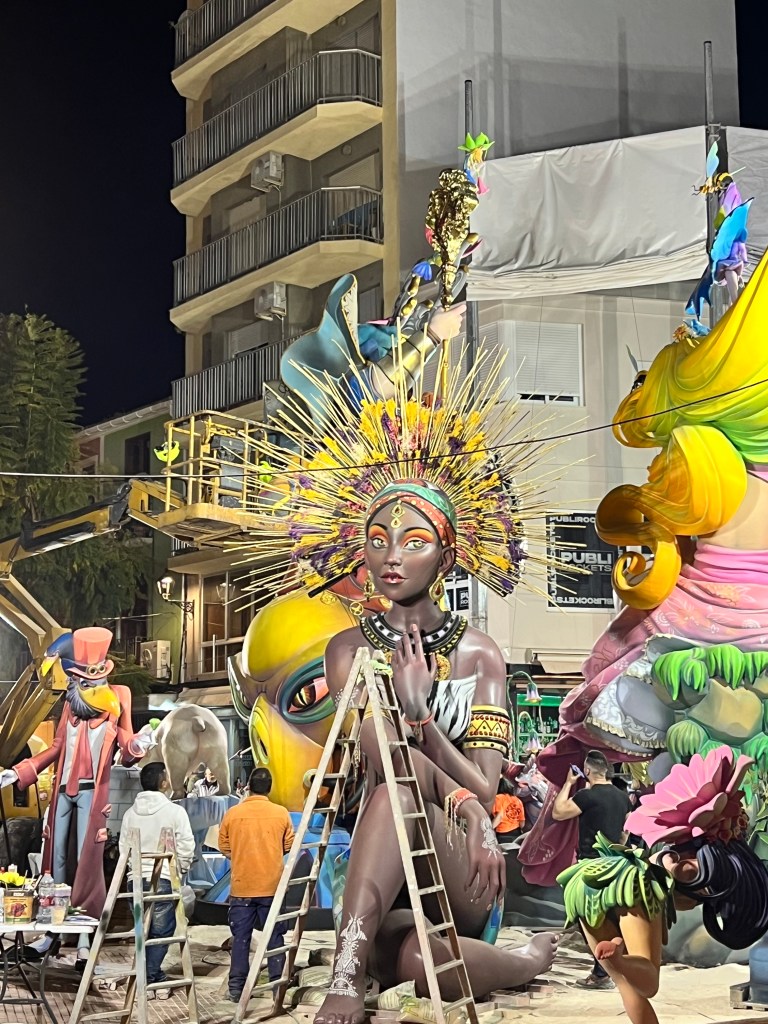Inscrites en 2016 au Patrimoine mondial de l’humanité par la très respectable Unesco, les Fallas sont ici à Valencia d’une importance monumentale et représentent une incroyable source de revenus pour la ville, son rayonnement et son secteur du tourisme et de l’hôtellerie, sans oublier l’activité de confection. Au point qu’on en oublie totalement tout le reste ! Il pleut des catastrophes ? La réponse ? « Du pain et des jeux ». Place à la Fête avec un grand « F » ! Mais est-ce bien raisonnable de continuer à mettre le feu à des centaines statues en polystyrène ?